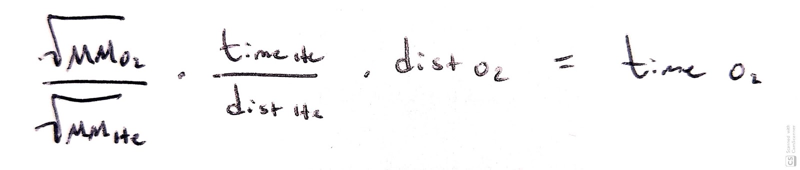 If it takes helium 38.3 seconds to cross a 100.0 meter room, how long will it take oxygen to cross a 400.0 meter room?